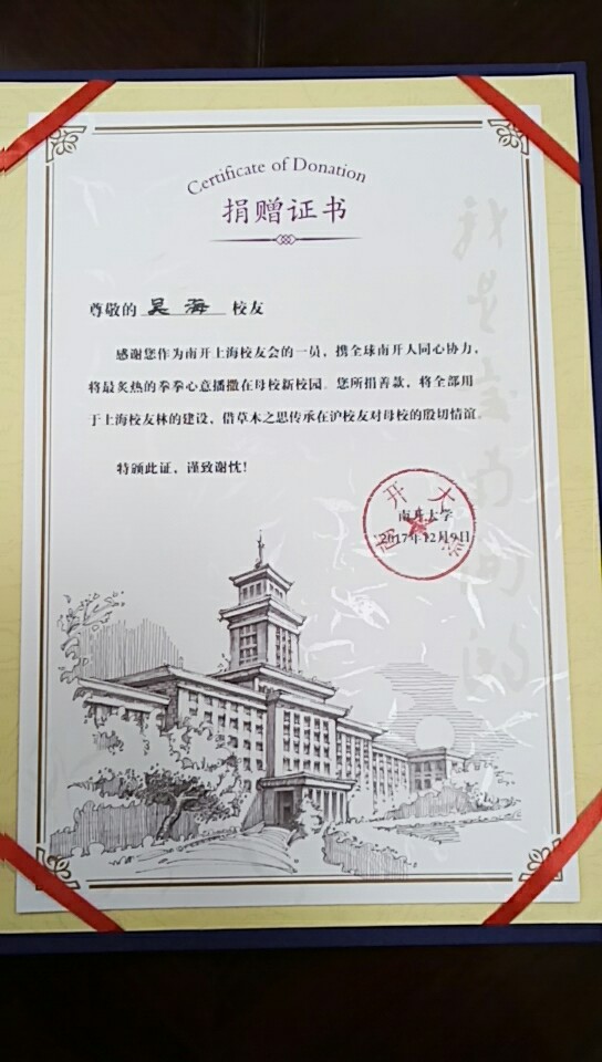 2017年吳海榮獲南開校友會杰出校友貢獻獎